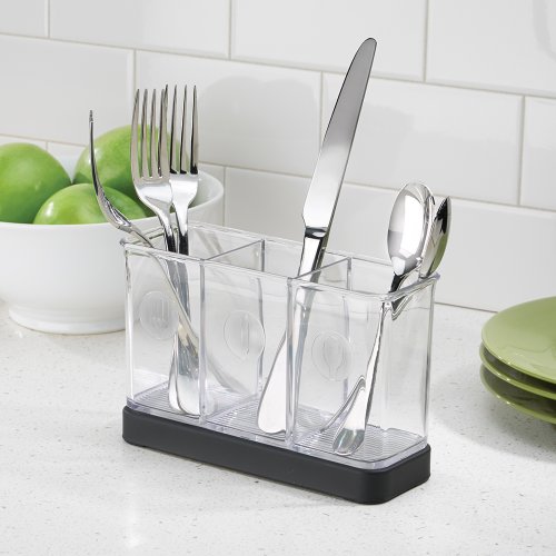 InterDesign Forma Utensil, Spatula, Silverware Holder for Kitchen Countertop Storage - Black/Clear
