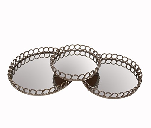 Privilege 88107 3 Piece Metal Round Elegant Trays, Silver, Medium
