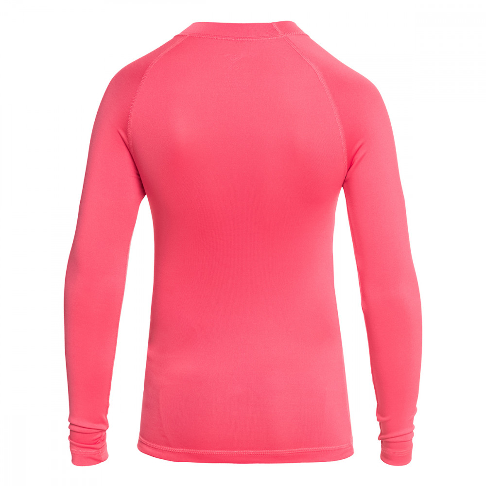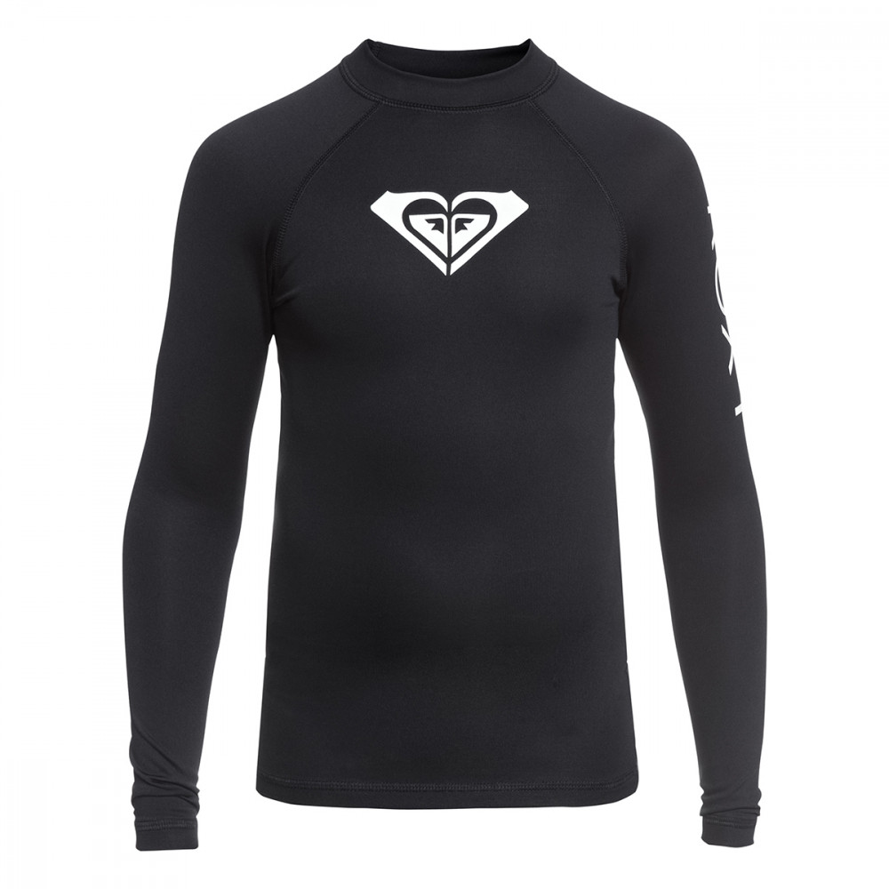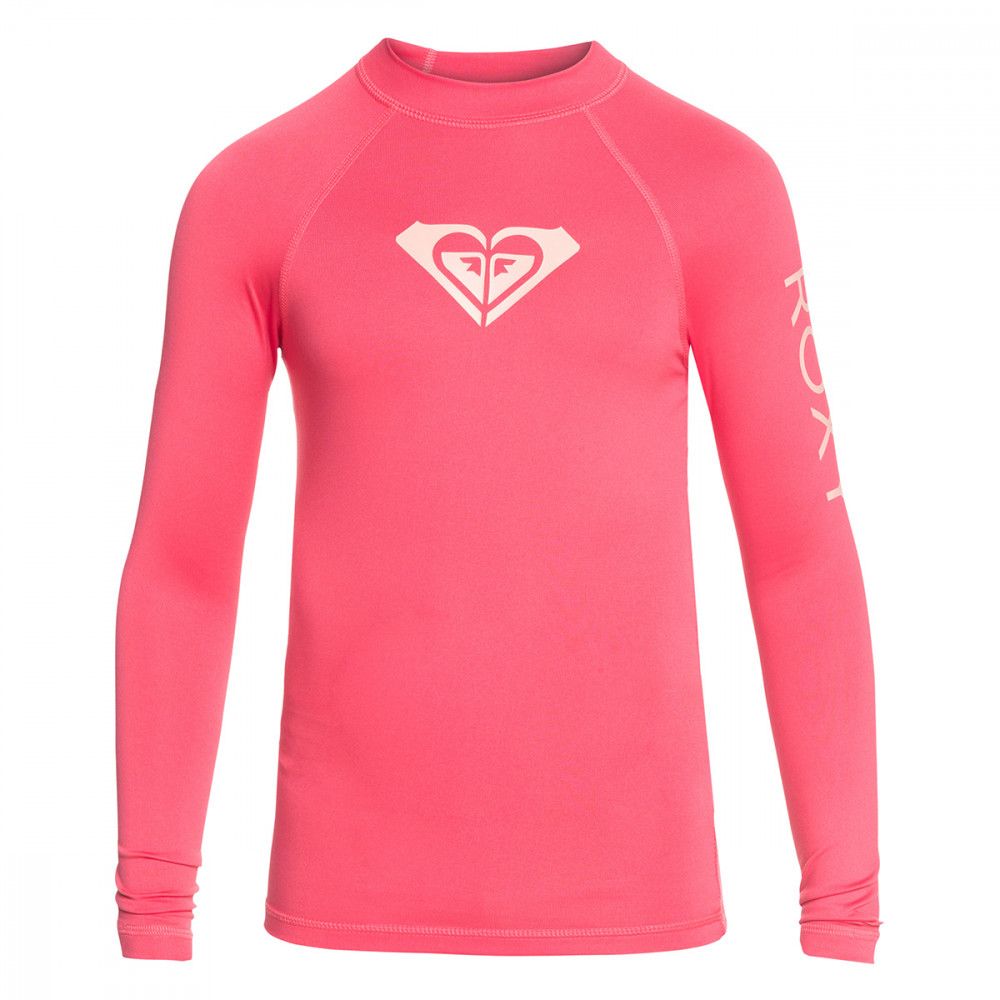 | 자외선 차단 지수 UPF 50+의 아동용 긴 소매 래쉬가드. 몸에 딱 맞는 핏이며 가슴과 왼쪽 소매에 록시 로고가 프린트되었다. | |