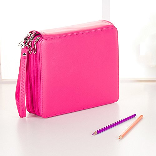 Homeself 120 Slots Large PU Pencil Case Pen Bag for Coloured Pencil Pens School Stationery Pencil Organizer Drawing Painting Storage (Rose Red)