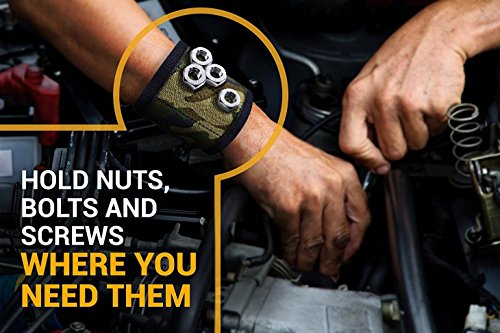 BSTRONG Magnetic Wristband With Super Strong Powerful Magnets Holds Bolts,Screws, Nails,Drill Bits. Best Unique Gift Tool Belt Cuff Bracelet (Army)