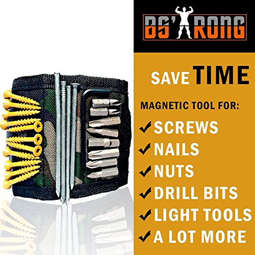 - FUNCTIONAL AND EFFICIENT ARMY MAGNETICWRISTBAND BS'TRONG: Delivers the strength of powerful magnets that you wear! Perfect for construction, gardering, electrical repairs, carpentry, mechanics, sewing and much more !! Nails, drill bits, fasteners, wrenches, nuts, scissors, screwdrivers and hammers are easily caught by our magnetic bracelet, being always on hand when you need them !
