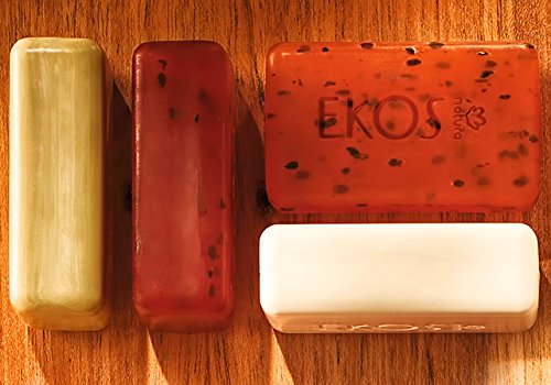 Os sabonetes de Natura Ekos são feitos na saboaria natura, na amazônia, com óleos 100% vegetais. Sua espuma cremosa e abundante deixa sua pele macia e delicadamente perfumada. PITANGA Feito com óleo essencial de pitanga, que possui propriedades perfumisticas, e esfoliantes naturais que proporcionam uma esfoliação leve. Sua fragância é vibrante com notas frescas de pitanga. ANDIROBA Feito com óleo de andiroba, que possui propriedades restauradoras. Sua fragrância é intensa e refrescante. BURITI Feito com óleo de buriti, que possui propriedades antioxidantes, e esfoliantes naturais que proporcionam uma esfoliação leve. Sua fragrância é delicada com as notas florais refrescantes de buriti. CASTANHA Feito com óleo de castanha, que possui propriedades nutritivas. Sua fragrância é aconchegante e envolvente. Os sabonetes em barra de Natura Ekos limpam e protegem, mantendo a hidratação natural da pele.Feature
