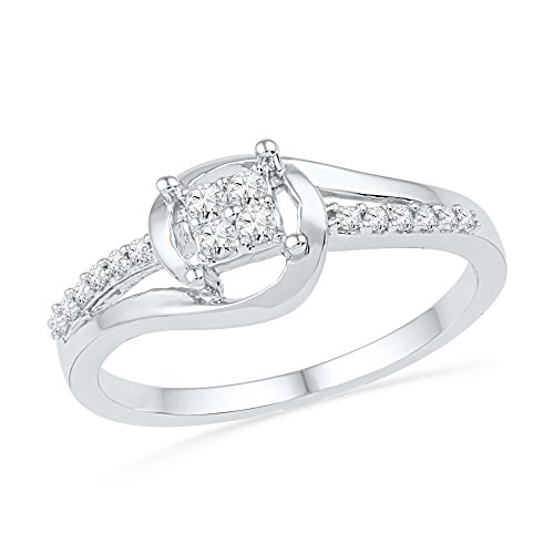 -. Title : 10kt White Gold Womens Round Diamond Square Cluster Bridal Wedding Engagement Ring 1/6 Cttw