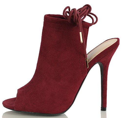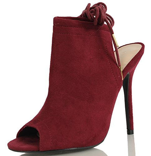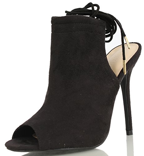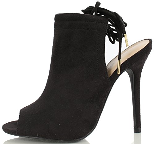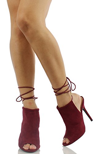 (Wild Diva)/Women's/Pumps/DIRECT FROM USA/Wild Diva Women's Adele 229 Faux Suede Peep Toe Open Back Lace Up Tie High Heel