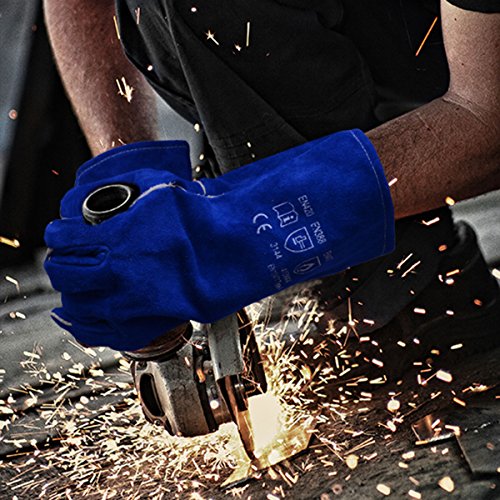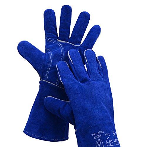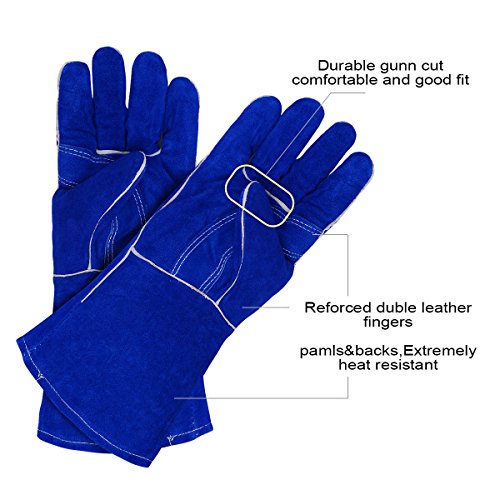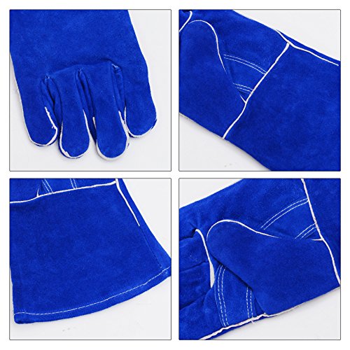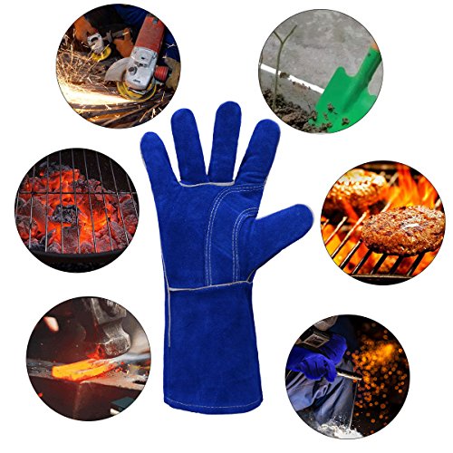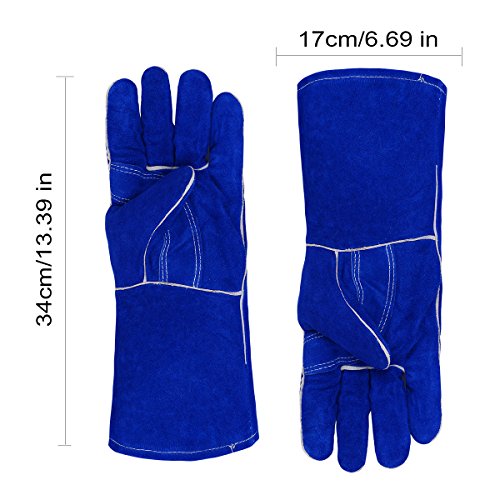 Leather Welding Gloves BOWOO Stitching Heat Resistant Glove for Tig/Mig/Stick/Gardening 14IN,1 pair (Blue)
