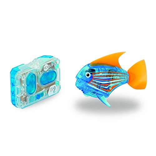 Utilize these AquaBot pet fish to navigate through different under water environments, without all the messy clean-up! Powered by electro-magnetic propulsion and a water activated automatic on and off sensor, kids can command their pet fish using the newly addition remote control making the AquaBot explore its environment, swim dive and change directions. Excitingly, kids can play with their HEXBUG AquaBot collection together by simply using a Channel 1 remote to control the first fish and a Channel 2 remote to control the other fish. To preserve battery life, the AquaBot will go into sleep mode after five minutes of inactivity and wake when activated.Feature