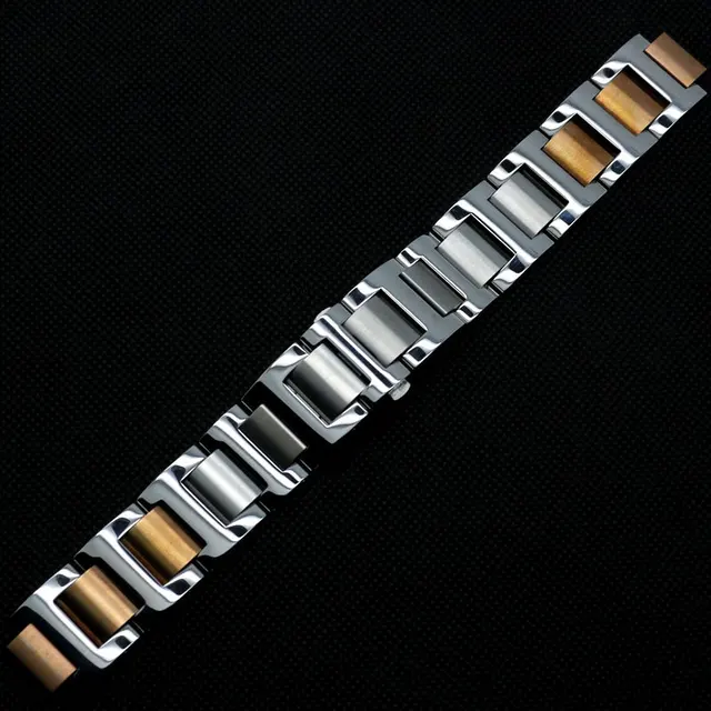 | [해외] 높은 품질 12 미리메터 폭 실버 & 황금 솔리드 스테인레스 스틸 밴드 나비 버클 비즈니스 캐주얼 시계 |