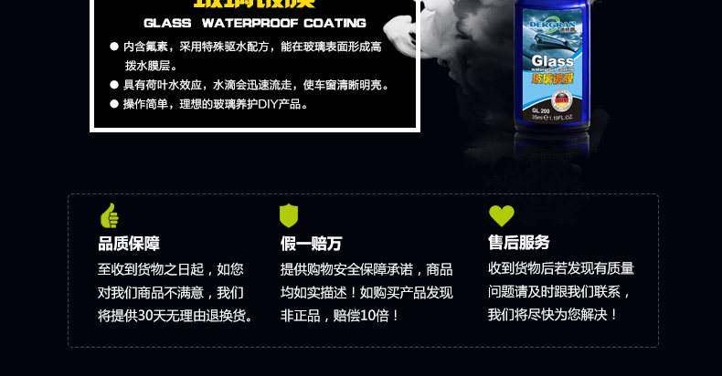 德格朗汽车玻璃镀膜防雨剂车用玻璃镀膜剂驱水剂除雨剂挡风后视镜