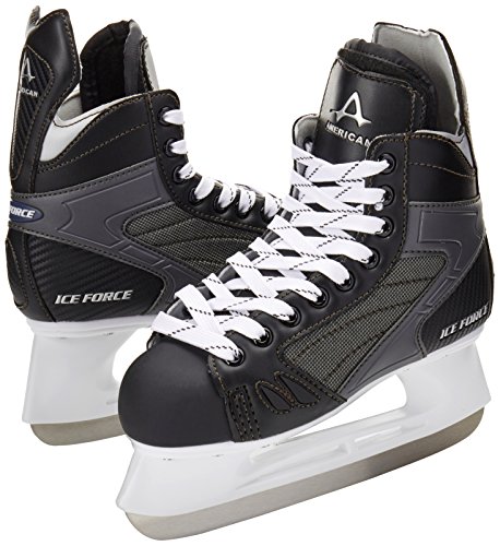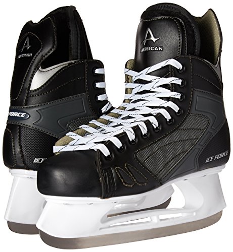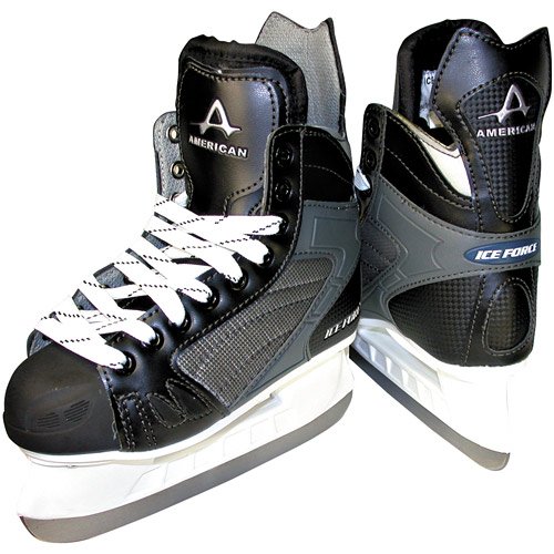 Studio : American Athletic Shoe Co. Publisher : American Athletic Shoe Co. Binding : Sports Product Description The entry level Ice force hockey skate is for indoor and outdoor ice hockey or recreation. The skate features multilayered boot construction to ensure ankle stability, moisture resistant Cambrelle lining for added comfort and easy break-in, a cut resistant box toe and a nylon blade holder and performance edge carbon steel blade. 0