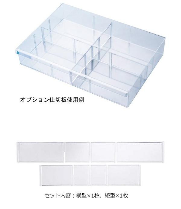 fk094igrjs引出しを分割して細かな整理をしやすくする仕切板です サイズ 個装サイズ:48×6×1cm 重量 個装重量:118g 素材・材質 透明スチロール樹脂 仕様 アバンテケースA3深型用 セット内容 縦型×1枚 横型×1枚 製造国 日本 A3サイズ深引出しを仕切ります 引出しを分割して細かな整理をしやすくする仕切板です ご注文後3~4営業日後の出荷となります