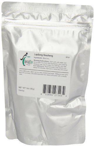 -. Binding : Grocery -. Brand : Special Tea -. EAN : 0852659275434 -. Feature : This well known Chinese black tea is a wiry, twisted leaf style from the Chinese Province of Fujian. / Withered over pine fires this aromatic, flavorful black tea has robust character with a smoky note. / Each packet of 3 oz. tea is individually handmade. / Shipped in resealable foil pouch to help retain freshness. / Makes about 40 cups of tea. -. Label : Special Tea -. Manufacturer : Special Tea -. Model : 852659275434 -. NumberOfItems : 1 -. PackageQuantity : 1 -. ProductGroup : Grocery -. ProductTypeName : GROCERY -. PublicationDate : 2013-06-03 -. Publisher : Special Tea -. Size : 3 Ounce -. Studio : Special Tea -. Title : Special Tea Loose Leaf Black Tea, Lapsong Soucheng, 3 Ounce -. UPC : 852659275434