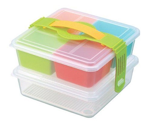 The small bento boxes is great for dividing the space, but they can be removed, in case you like to use a large space for your food