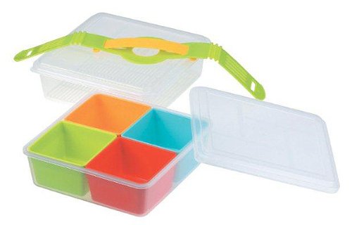 4 individual small bento boxes/containers in a Large carry container for the 4 individual boxes to fit in