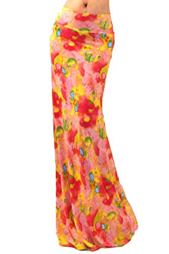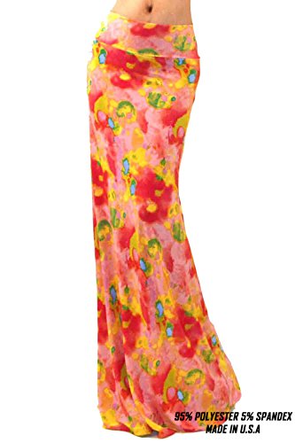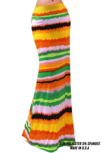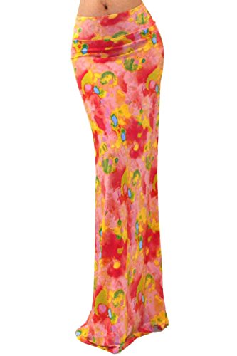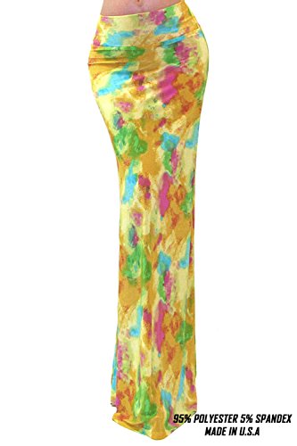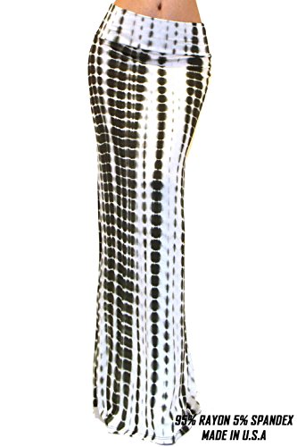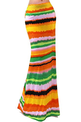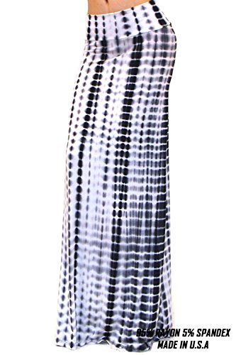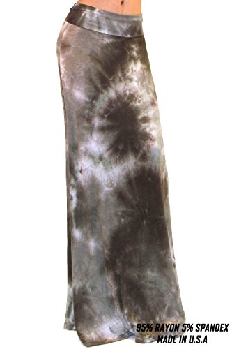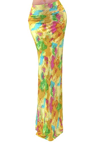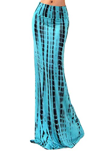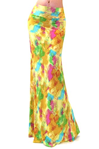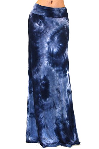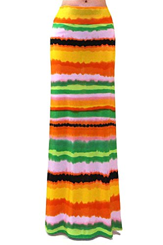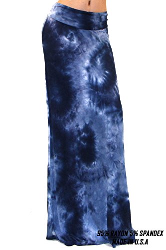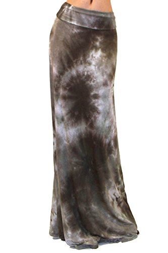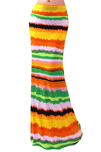 | VIVICASTLE Women's Colorful Tie Dye Acid Washed High Waist Foldover Maxi Skirt |