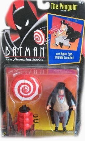 -. Binding : Toy -. Brand : Kenner -. EAN : 0797619888920 -. Feature : Batman The Animated Series THE PENGUIN 5" Action Figure / Part of the Batman The Animated Series 5 inches tall Action Figure line. / The Penguin comes with shooting Hypno-Spin Umbrella Launcher! / Made by Kenner in 1992 and long out of production. -. IsAdultProduct : 0 -. Label : Kenner -. LegalDisclaimer : ages 4+ -. Manufacturer : Kenner -. MPN : JW-I07Y-H67D -. PackageQuantity : 1 -. PartNumber : JW-I07Y-H67D -. ProductGroup : Toy -. ProductTypeName : TOYS_AND_GAMES -. Publisher : Kenner -. SKU : R3-UJ1F-99A7 -. Studio : Kenner -. Title : Batman The Animated Series The Penguin Action Figure -. UPC : 798527731766