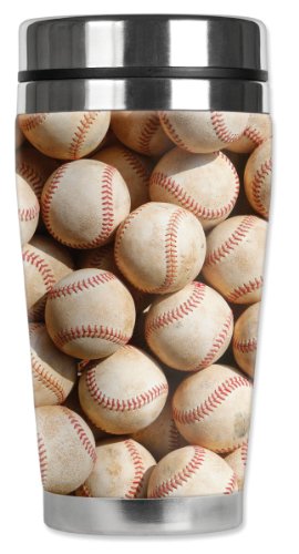 Mugzie Old Baseballs Travel Mug with Insulated Wetsuit Cover, 16 oz, Black