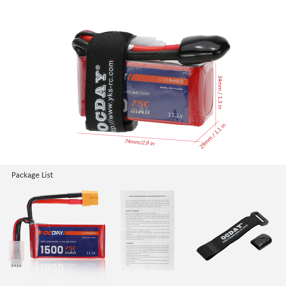 1 * OCDAY 11.1V 1500mAh 75C Li-Po Battery (XT60 Plug)