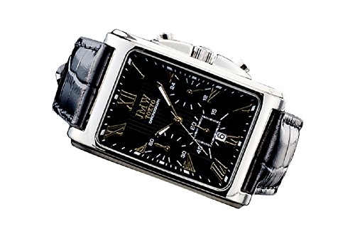 -. Title : 【JMW】ブラック&ゴールド角型ローマン上級クロノグラフ腕時計メンズ【世界限定300本】