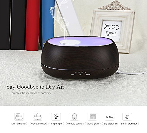 - Not only an aroma diffuser and air humidifier, but a night light, helpful to those who scared of the dark at bedtime. Large 500ml water capacity,ultrasonic vibrations turn the water and oil into an ultrafine scented mist that refreshes rooms up to 269 sq. ft. Runs continuously for 10 hours