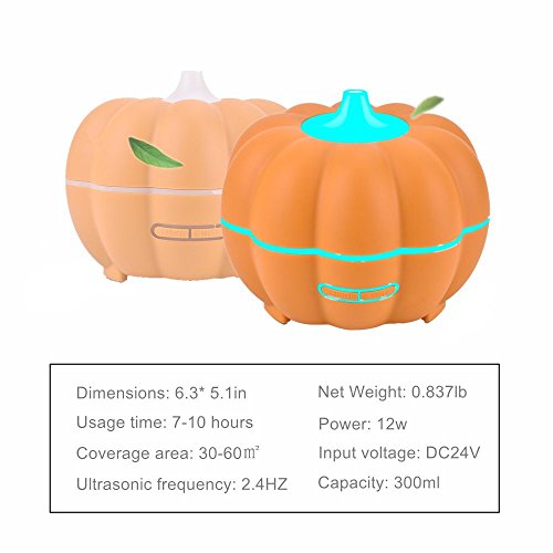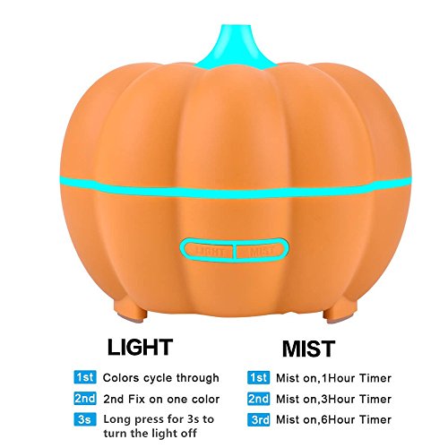 - 💎【3 in 1 Functions】: Aromatherapy Diffuser, Cool Mist Humidifier, Pumpkin design Night Light. An ideal way to add moist, comfortable air to your bedrooms, hotel rooms, tabletops and even workplace cubicles. Add a drop of your favorite essential oil into this aroma diffuser to give your room a fresh, clean scent.