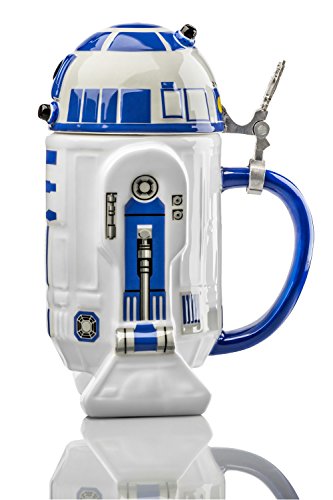 Introducing the officially licensed R2-D2 Signature Stein! The R2-D2 Signature Stein stands an impressive 9in tall and can hold up to 32oz of the aforementioned beverage. Crafted in the highest quality ceramic with painstaking attention to detail, the innovative design features a head-hinged lid with genuine pewter thumb lift.