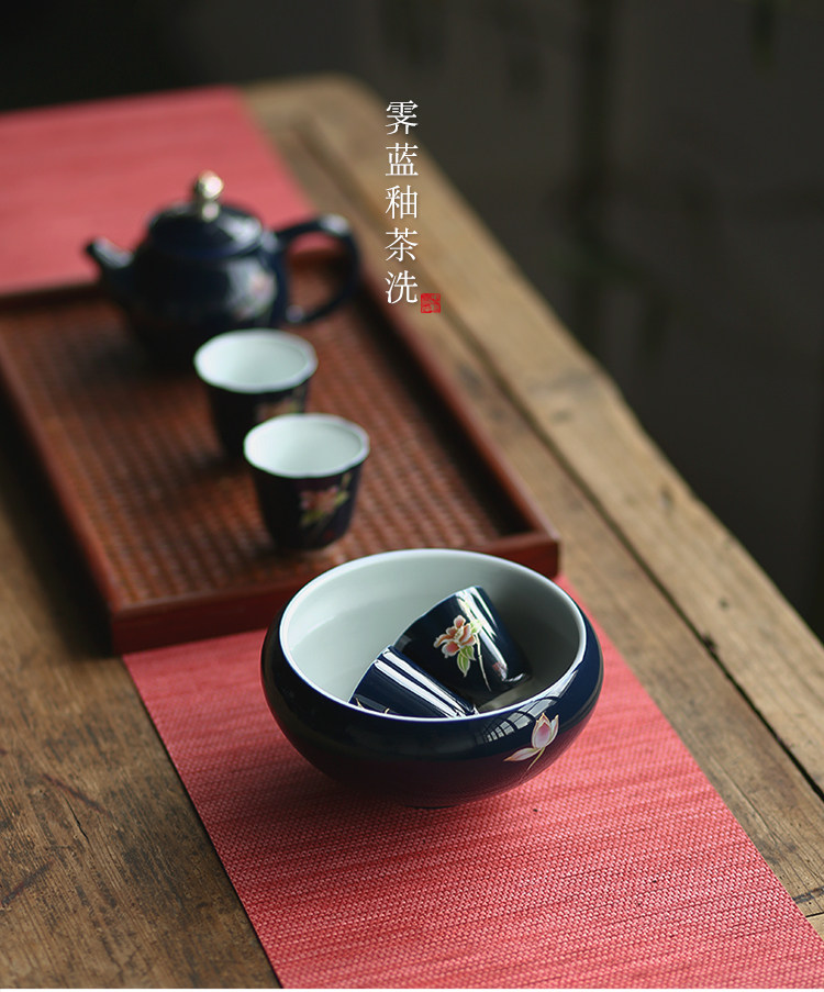 霁蓝釉茶洗 陶瓷功夫茶具配件水洗小号水盂盆笔洗茶缸茶碗