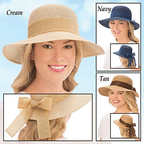 Studio : Collections Etc Publisher : Collections Etc Binding : Apparel Product Description Women's Wide Brim Straw Summer Beach Hat With Bow Description Protect yourself from the sun and do it with style in this cute and versatile straw hat. The flattering hat features a wide brim and a charming bow on the back. Available in three stylish colors. Spot clean. Paper; imported. One size fits most. Choose Cream, Navy, or Tan. No Risk Purchase, Hassle-Free Returns - 100% Satisfaction Guaranteed With customer satisfaction as our number one priority, we proudly offer a Satisfaction Guarantee for all of our merchandise and services. From our appealing merchandise and incredible values, to our friendly customer service, we strive to provide a positive shopping experience by meeting or exceeding your expectations.If you are not completely satisfied within 60 days of your purchase (see return policy for details).