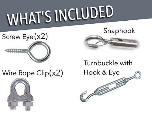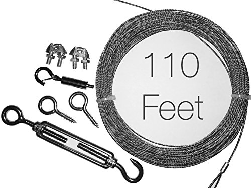 Globe String Light Suspension Kit, Galvanized Steel Cable, 110 ft., With Screw eyes, Turnbuckle, and Hook, More attachments included!