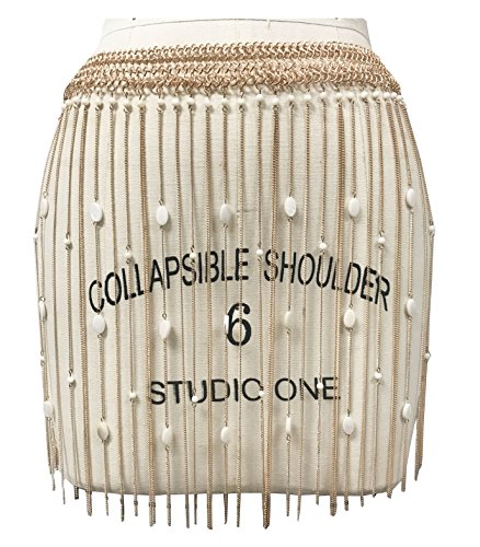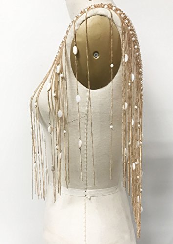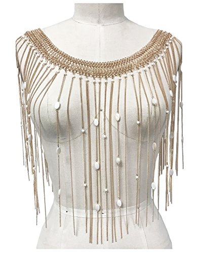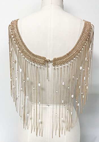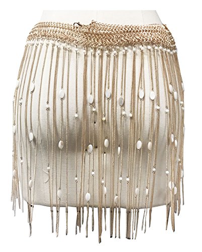 Boho chain matal top and skirt fringe with pearl bikini cover up (GOLD)