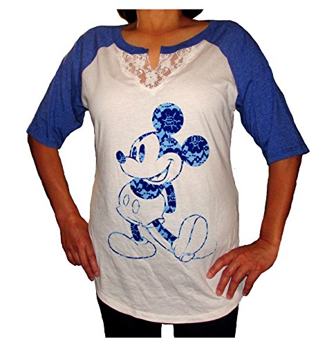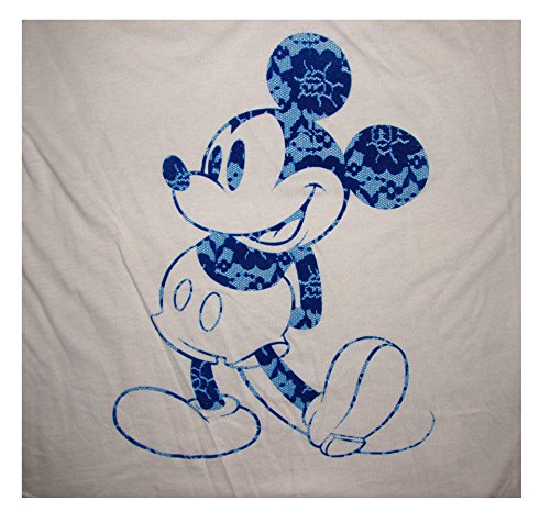Disney Mickey Mouse Half Sleeve Lace Neck Juniors Tee Shirt (Small)