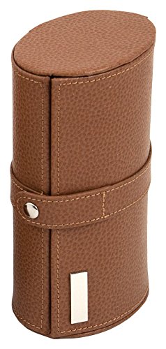 Time Factory Leather Watch & Cufflink Travel Case With Snap Closure. , Tan, 0.65 Pound