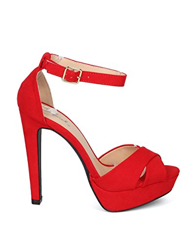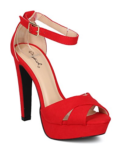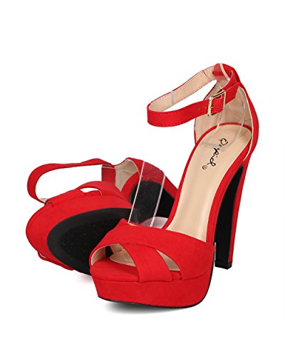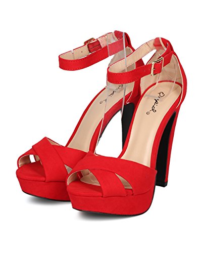 Studio : Alrisco Publisher : Alrisco Binding : Apparel Product Description Perfect for date night, these sandals are made with a faux suede upper, peep toe and cross bands at vamp. Also made with a covered platform, thick stiletto heel and ankle strap with adjustable buckle closure. 0
