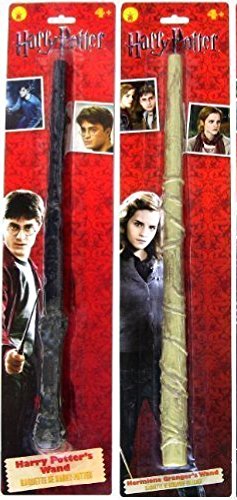 -. Feature : Bundle of 2: Harry Potter, and Hermione Granger Magic Wands. / Officially licensed (Warner Bros) Harry Potter product. / Harry Potter's holly wand - 14" long, brown plastic with faux wood detail. / Hermione Granger's vine wand - 15" long, light brown wood-tone plastic with vine tendril detailing.