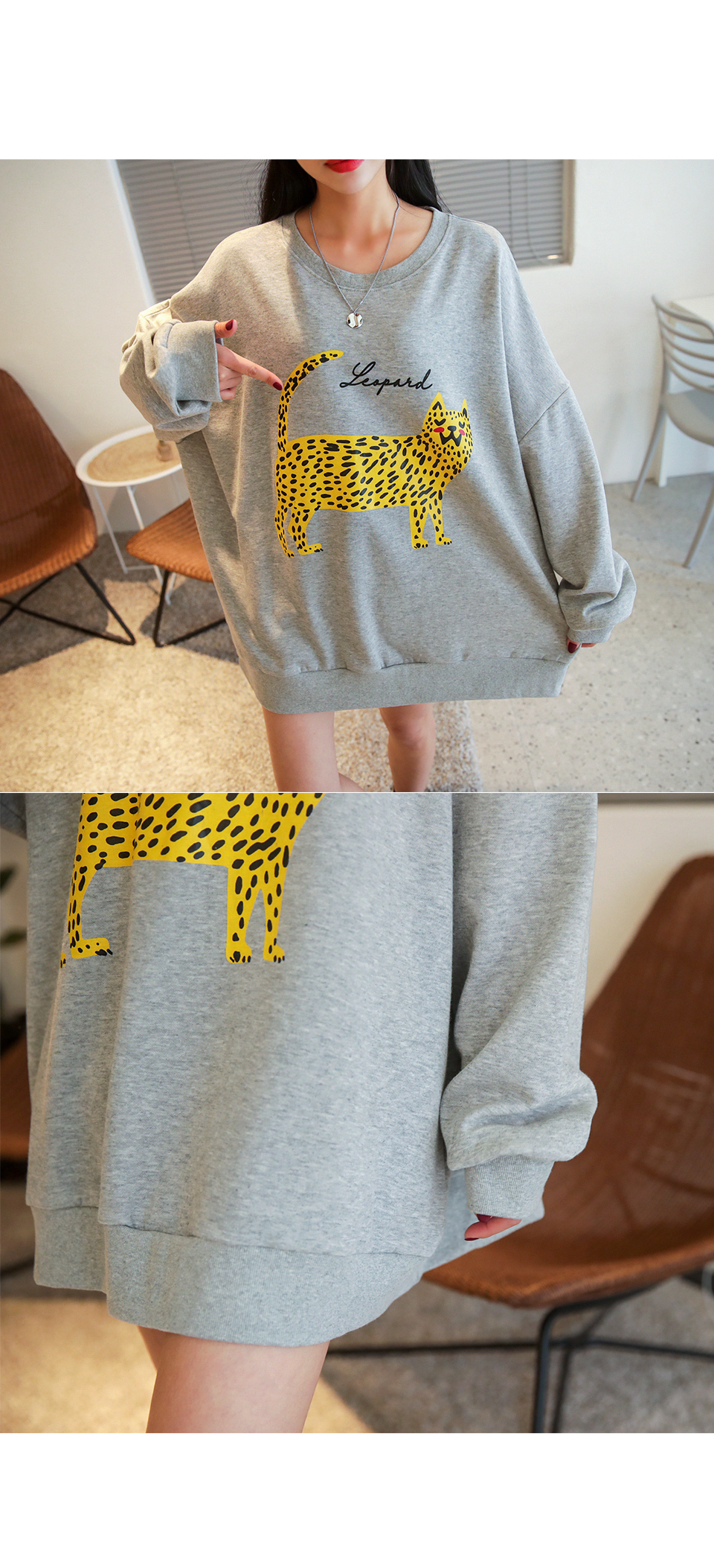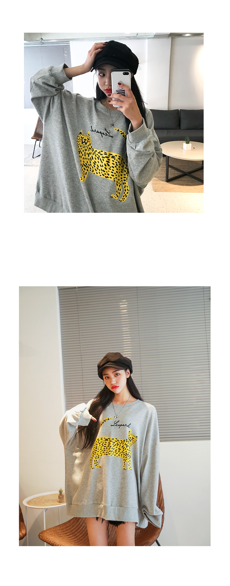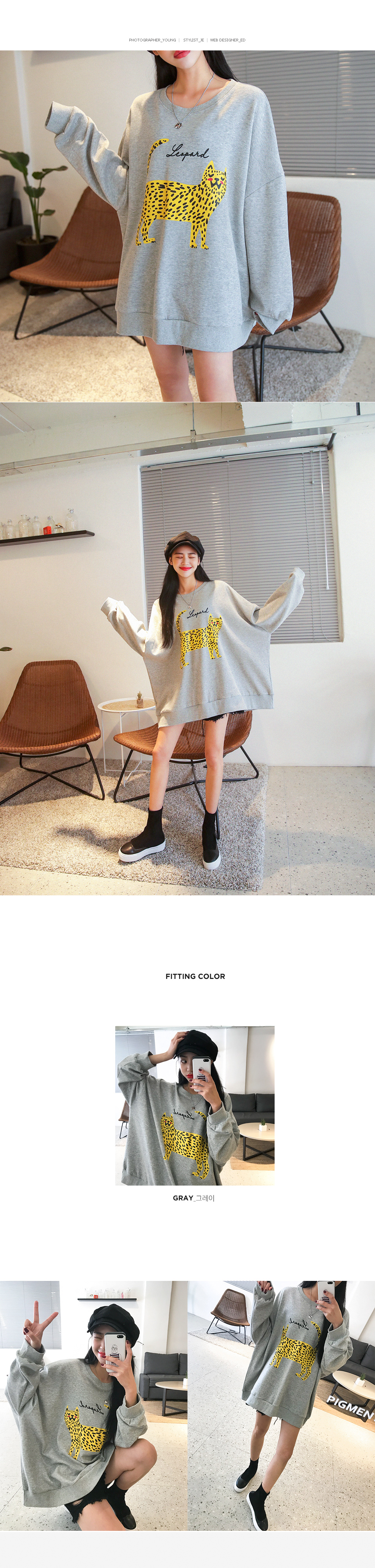 호피 무늬 나염이 유니크하게 포인트가 되는 캐주얼 맨투맨 아이템!