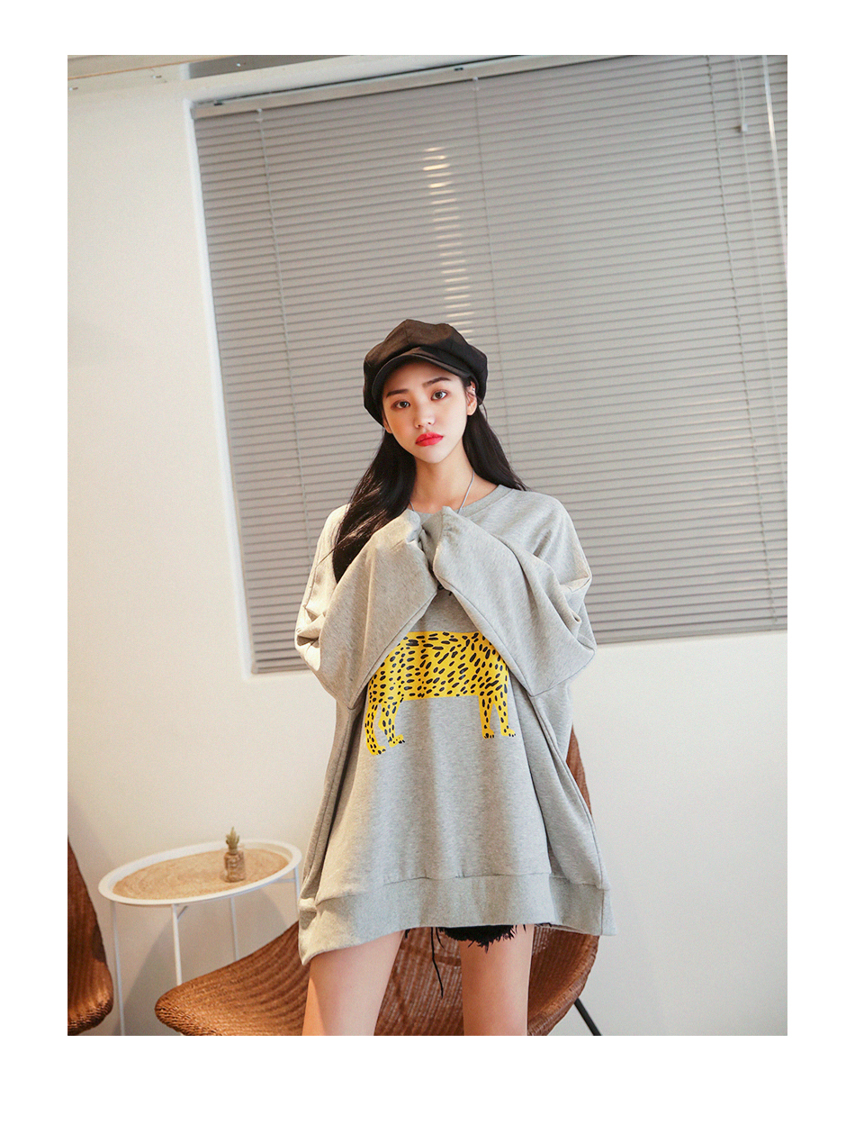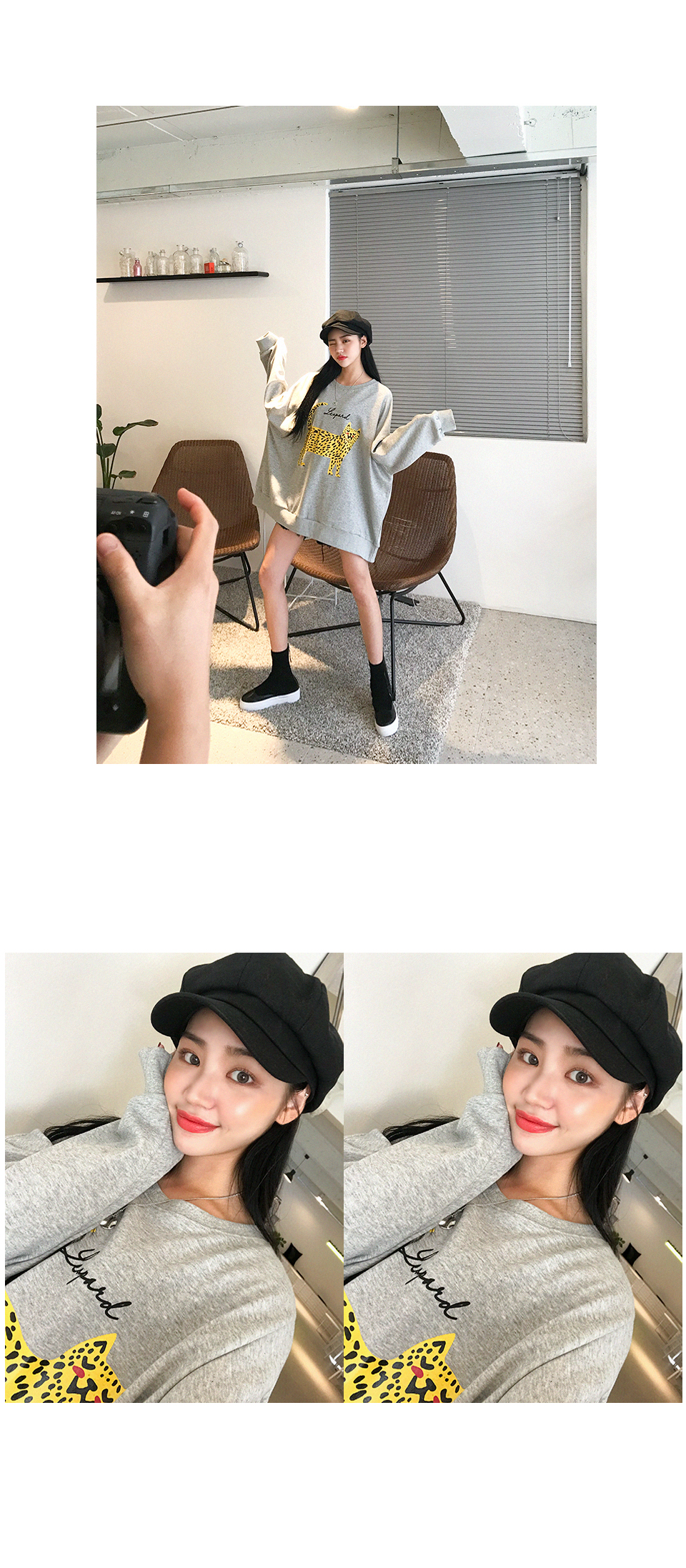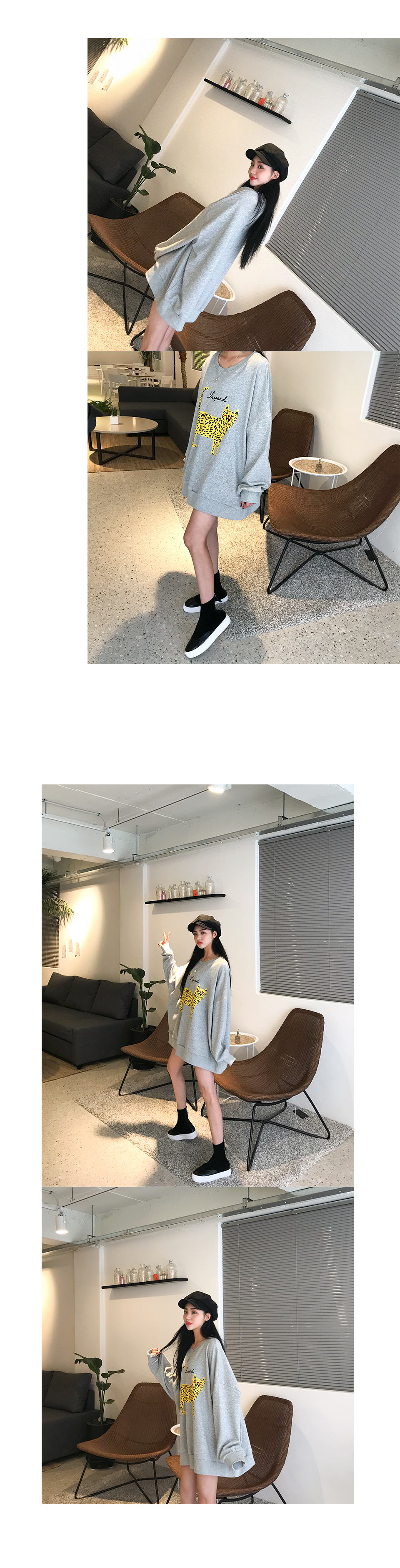 호피 무늬 나염이 유니크하게 포인트가 되는 캐주얼 맨투맨 아이템!