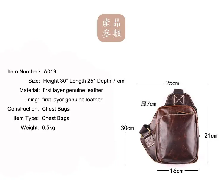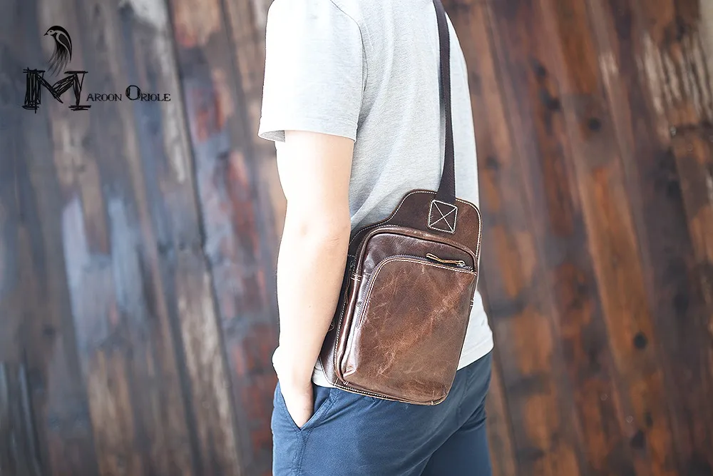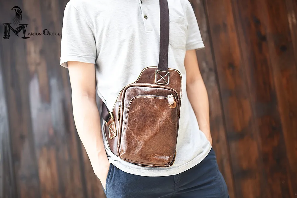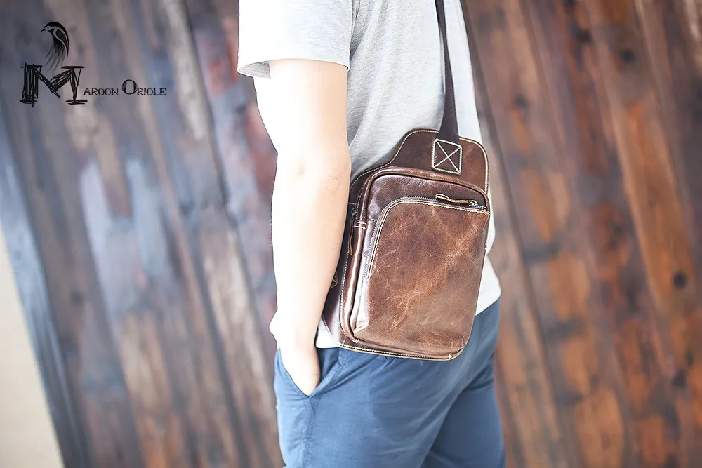 Sex:cow genuine leather chest bag for men