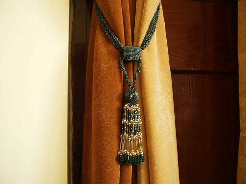Pair - Green Decorative handmade Tiebacks / Tassel / Curtain Holdback