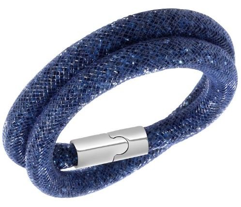 This vibrant design can be worn as a double wrap bracelet or choker. It features a blue nylon fishnet tube filled with tiny blue crystals creating a 3D silhouette. The easy-to-use magnetic closure shines in palladium-plated metal. Size Small - 14 7/8 inches.Feature