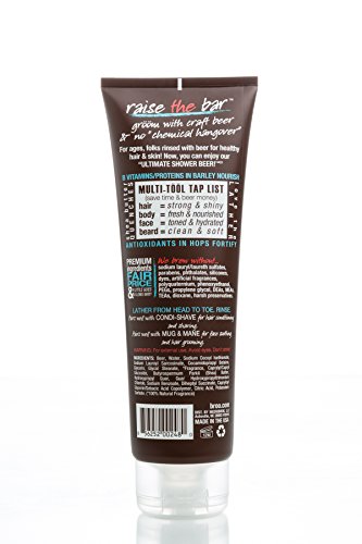 100% Natural Fresh HOP'd Scent Brewed in the USA Hair + Body + Face + Beard Cruelty Free and Vegan Enjoy Responsibly! No Sulfates No Phthalates No Parabens No SiliconesBeer really does make you better looking!Raise the BarGroom with craft beer & no “chemical hangover”B Vitamins/Proteins in Barley NourishShea Butter QuenchesMulti-Tool Tap List(save time & beer money)Hair = strong & shinyBody = fresh & nourishedFace = toned & hydratedBear = clean & softLove the LatherPremium ingredients fair price & a little goes a long way!We brew without...Sodium lauryl/laureth sulfates, parabens, phthalates, silicones, dyes, artificial fragrances, polyquaternium, phenoxyethanol, PEGs, propylene glycol, DEAs, MEA, TEAs, dioxane, harsh preservatives.Feature