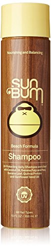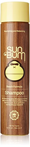 -. Feature : SUN BUM BEACH FORMULA SHAMPOO DELIVERS DEEP NUTRITION, STRENGTHENING AND INTENSE SMOOTHING TO THE MOST DIFFICULT TO MANAGE HAIR. / PROVIDES HUMIDITY-RESISTANT FRIZZ CONTROL FOR LONG-LASTING STRAIGHT AND SLEEK STYLES. INFUSES HAIR WITH HYDRATION FOR SMOOTHNESS, RESILIENCY AND SHINE. / FORTIFIES THE HAIR CORTEX BY REPLENISHING ITTO ENHANCE ELASTICITY, SURFACE SMOOTHNESS AND FRIZZ AND BREAKAGE RESISTANCE. / LEAVES HAIR ULTRA-SMOOTH, SHINY AND CONTROLLED. PERFECT FOR ALL HAIR TYPES. RESISTS STATIC, FRIZZ AND FLY-AWAYS. / UV PROTECTING. ENRICHED WITH COCONUT OIL, BANANA PULP AND PEEL, BANANA LEAF, QUINOA PROTEIN AND SUNFLOWER SEED OIL. SLS FREE. PARABEN FREE. SILICONE FREE. ALCOHOL FREE. CRUELTY FREE. MADE IN USA. 10 FL. OZ. / 300