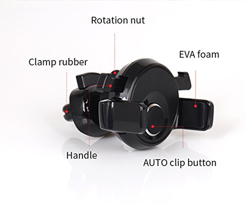 -. Feature : Quick Release Button: press the release button to quickly extend both grip arms, easy to place your phone in the phone holder or to remove in seconds, without jamming or pulling so hard, tools free / 360 Degree Rotation: The fully 360-degree rotation provide you with the best viewing angle.The holder ensures safe driving whether you are talking, navigating, listening to music or charging / road Compatibility: Passed a wide range of tests, fit for most cellphones, iPhone 7 7 Plus iPhone 6s Plus, 6s, 5s, 5c ,Samsung Galaxy S6, HTC,LG, Nexus, Nokia, GPS Device. Sturdy, cradle-less and attractive device holding system.suitable for width size from 1.9 inch to 3.7inch smart phone or electronic devices. / STURDY HOLD: with the bottom holder and both grip arms, the phone holder like a cradle provides triple protection for your phone, strongly holding your phone and keep it from falling regardless of road vibrations or bump; grip arms will not block the volume button / After Sell Service: 3 month return, 6 months replacement, lifetime warranty!!