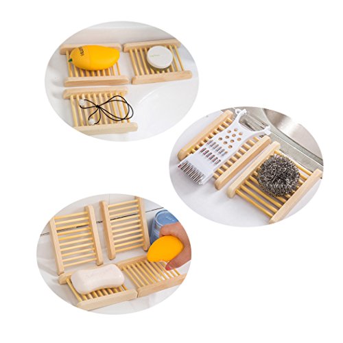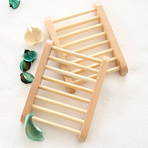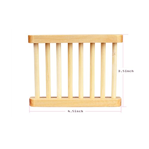 -. Feature : Color: Natural colour. Dimensions: 11.5*9*1.7 cm. Material: Wood. / ComP.R.Ising: 2 Wooden Soap Dishes + 1 Foaming Net / 10 slots drain water quickly. Drain excess water from soap dish into sink. / Keep soap clean and dry, no more soft mushy soap. / For bathrooms, kitchens. Fashion and deluxe design with streamline appearance.