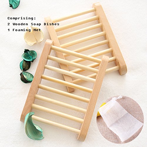-. Title : 2 Pcs Wooden Soap Dishes Holder Rack Bath Kitchen Accessories Handmade Natural Wood Soap Dish Soap Holder( 1 Foaming Net )