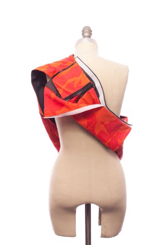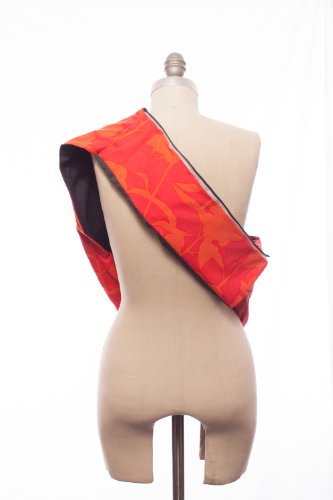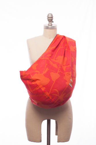 This red and orange tropical inspired pattern has been a huge hit. Made with soft, luxurious 100% cotton, the pattern is paired with a chocolate backing. Padded side protection. Reversible, an interlocking zipper system customizes to all body types. Tumble dry low. Made in the USA. With every sling purchased, Rockin' Baby will donate a new sling to a Haitian mother, and educate her on its importance. Mother to mother.Feature