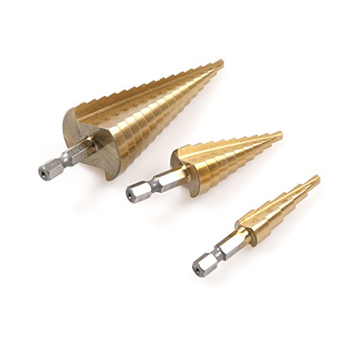 3 Pics Titanium Coated Step Drill Bits 1/4" HSS Hex Shank ,4-32mm 4-20mm 4-12mm