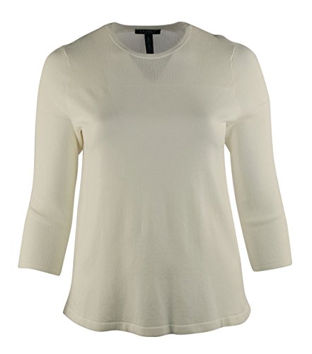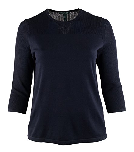 Lauren Ralph Lauren Women's Plus Size Mesh Sleeve Crewneck Sweater