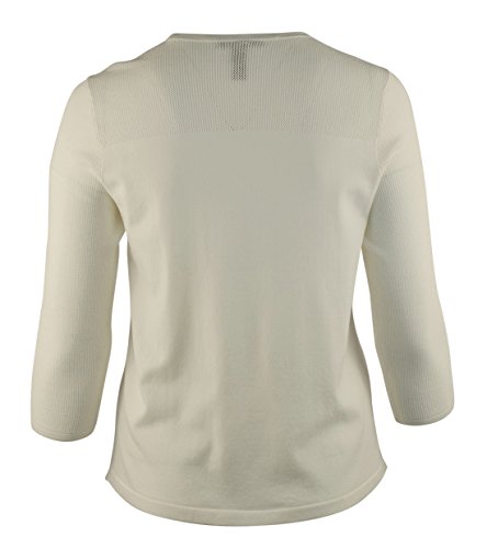 Product Description52% Viscose, 46% Nylon, 2% Elastane, Women's plus size classic crewneck sweater with a mesh yoke and sleeves, ribbed hem0