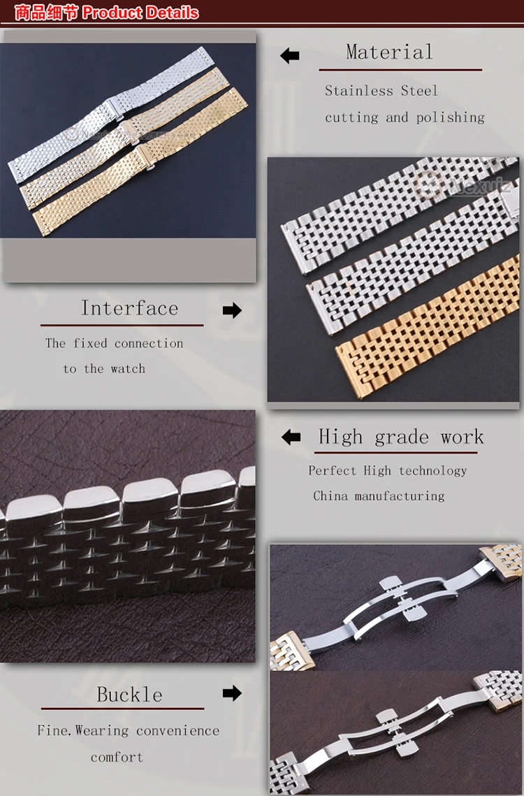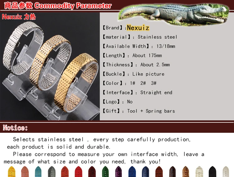 뜨거운 판매 시계 줄, 13 18 미리메터 실버 골드 스테인레스 스틸 초슬림 손목 팔찌 남성 여성 쿼츠 시계 스트랩