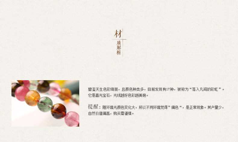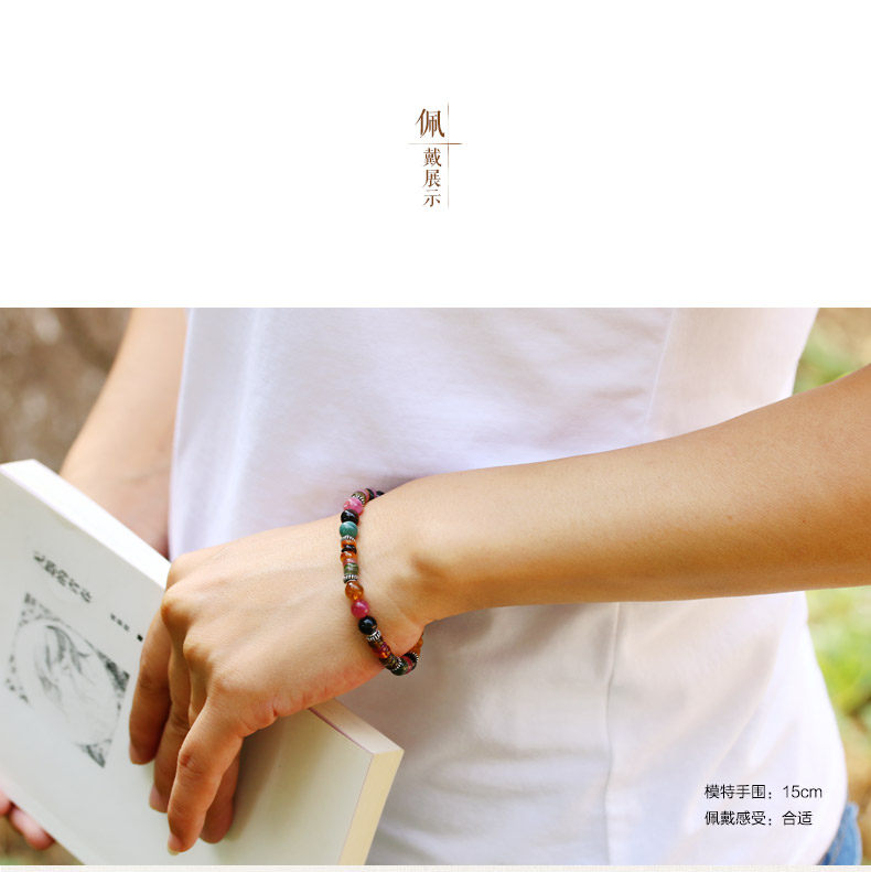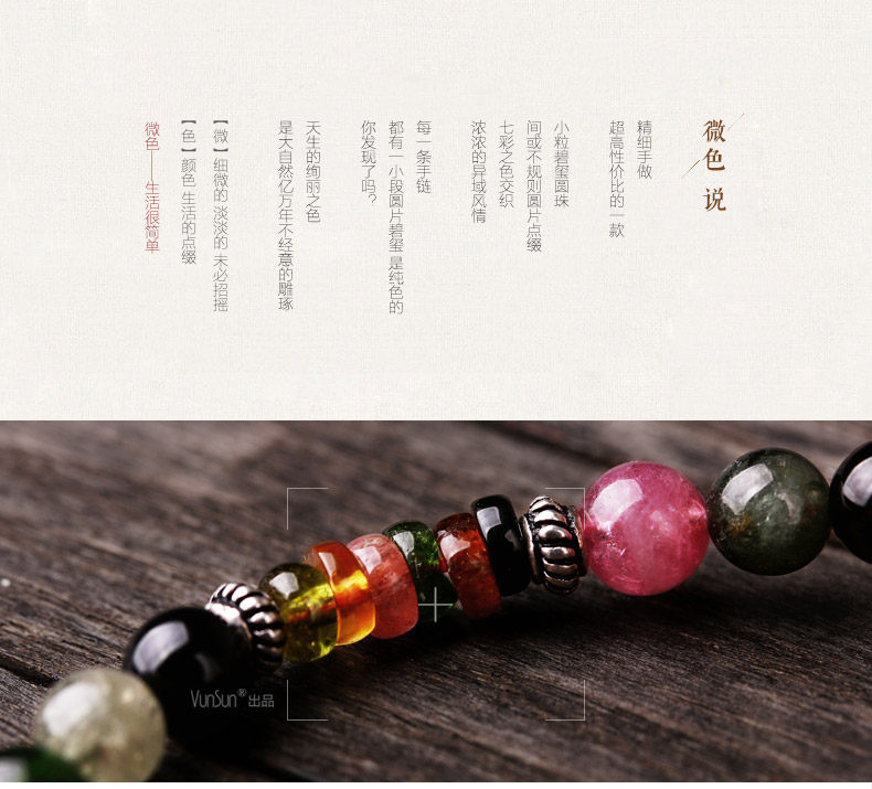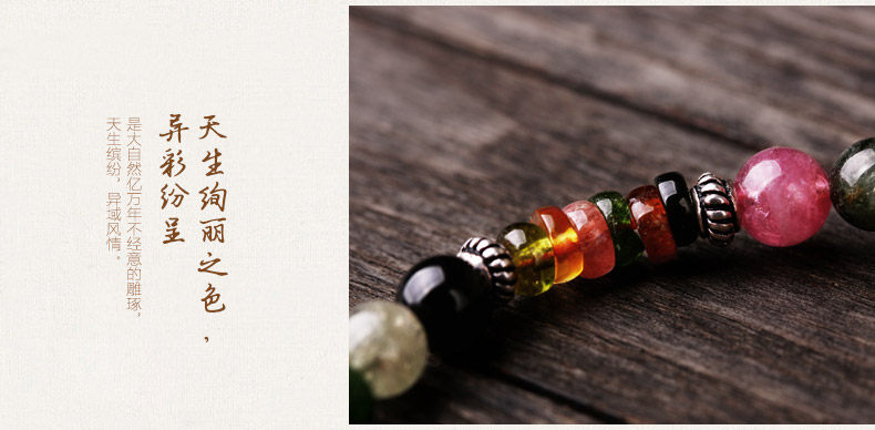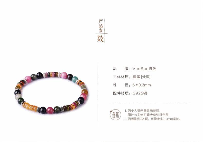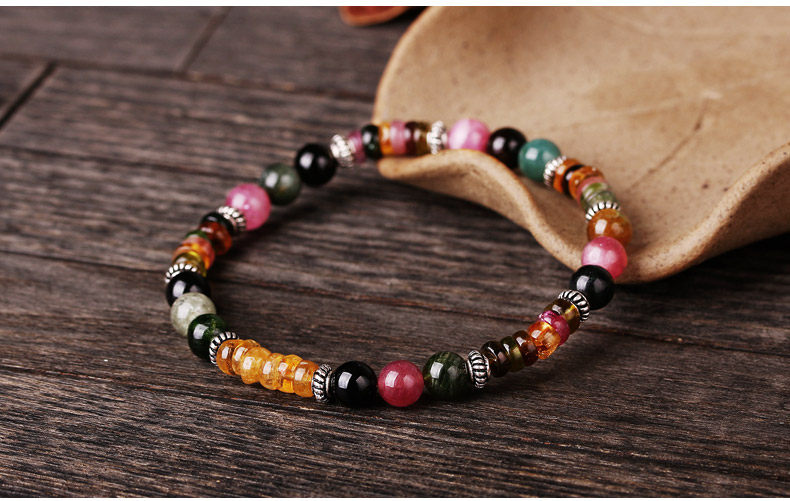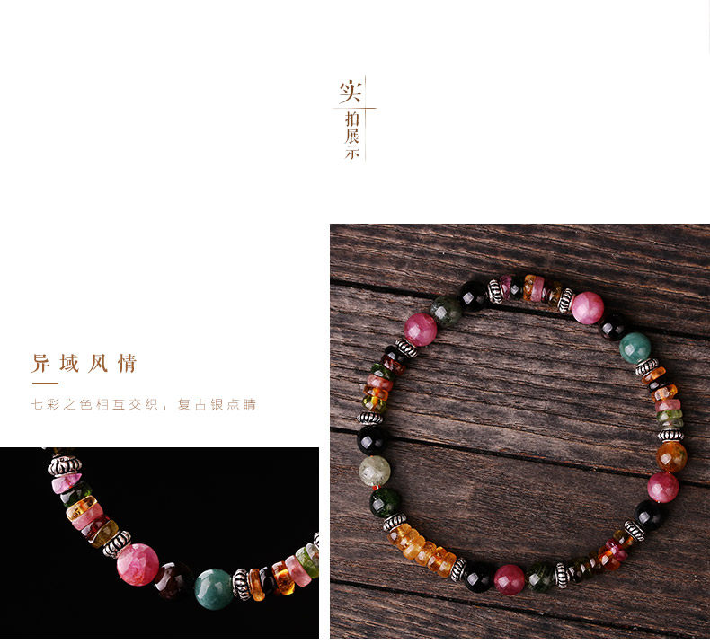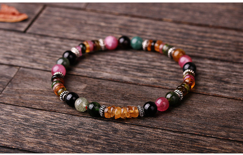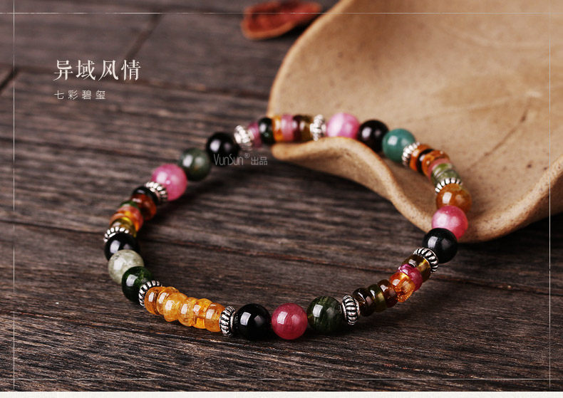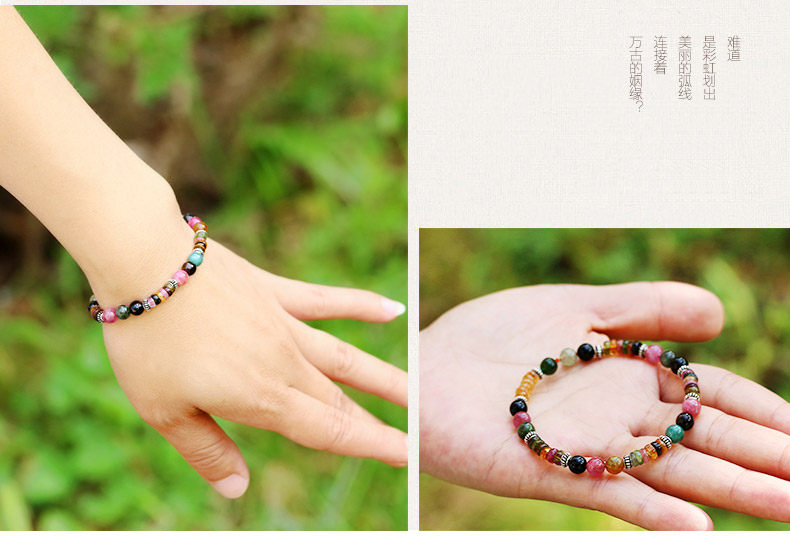 天然碧玺水晶手链女单圈彩色水晶手串 简约清新文艺 饰品